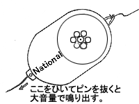 | 特長 | ドップラー効果の説明などに最適なブザー。本来は痴漢撃退用に開発されたものだが、大音量を発し、少しぐらいは乱暴に扱っても壊れない。(8年間使ってきたが未だ故障なし)小型でデザインもよく、値段も手ごろである。 ![]() <利用方法> ・ひもをつけて回転させる。 ・スポンジにくるんでキャッチボールをする。 |